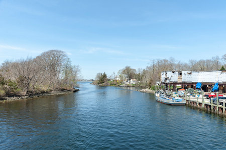 Tiverton, Rhode Island, USA - May 2, 2018: Commercial fishing vessel Alison Rose lying dockside on Nannaquaket Pond near the Sakonnet River