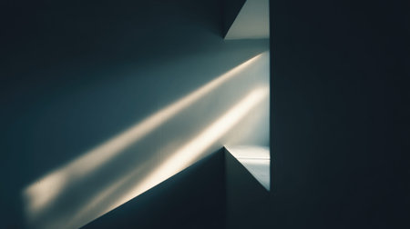 This visually striking image captures the interplay of light and shadow within an architectural environment, emphasizing geometric shapes and modern design.