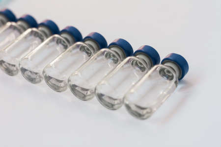 Empty glass jars of coronavirus vaccines. No people