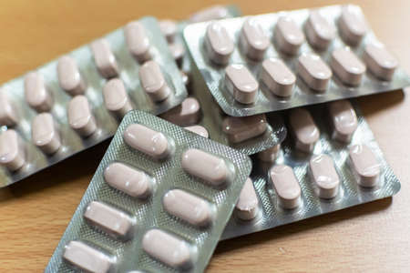a bunch of tablets on the table, Selective focus, Selective focus on subject, background blur