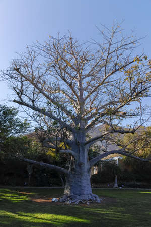 Growing big baobab tree in botanical garden Maspalonas, Gag Canaria, Spain