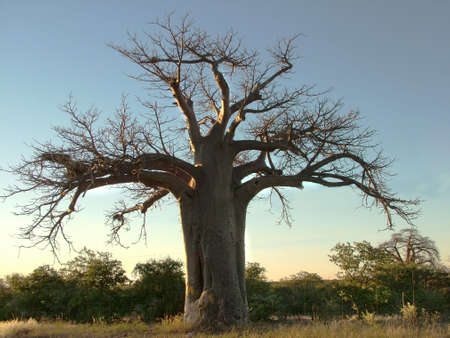 majestic tree Baobab, Adansonia digitate, after sunrise in namibia near Botswana border. Africa wilderness