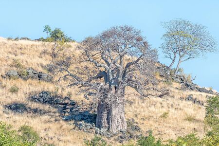 A baobab tree, Adansonia digitata, on the slope of a hill