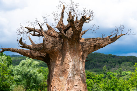 Long-lived native african tree baobab, Adansonia digitata in kibbutz Ein-Gedi near Dead sea, Israel