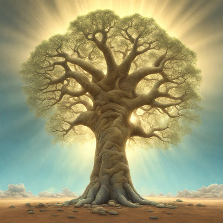 Glowing African baobab tree illuminated under a starlit sky, representing cultural legacy and resilience