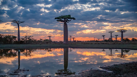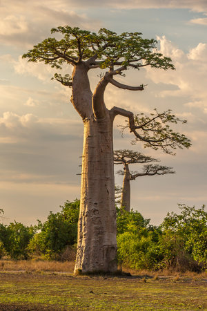 Beautiful Baobab trees at sunset at the avenue of the baobabs in Madagascar
