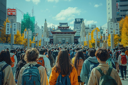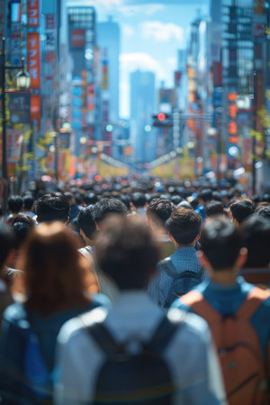 A Crowd of People Walking Through a City Street in Japan