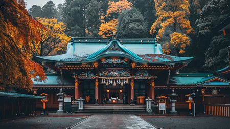 Traditional Japanese Shinto Temple Complex in Autumn, Architecture and Natures Harmony