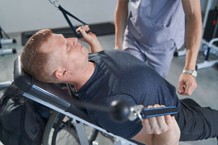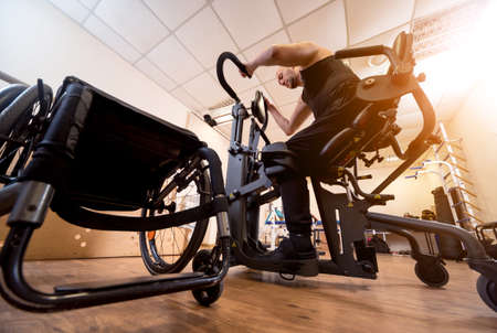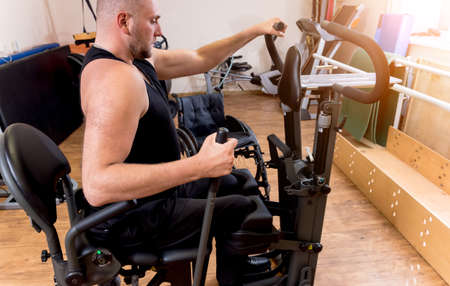 Disabled man training in the gym. Rehabilitation center