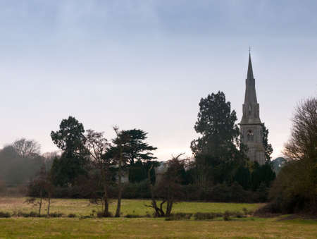 Mistley christian church as seen from over a field with trees in spring; essex; england; uk