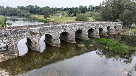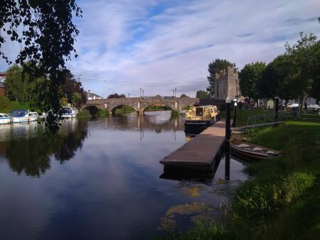 Amazing landscape of bridge reflect on surface water of river in County Kildare, Ireland.
