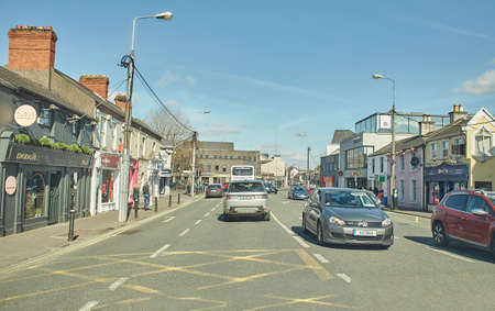 Naas, Ireland - 04.03.2022: Ireland's streets with cars, garda pedestrians, people and cyclists.