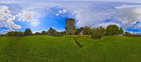 A panorama in the field of Aughnanure Castle, Oughterard. Co. Galway, Ireland.