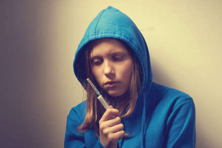 Teen girl addict with syringe