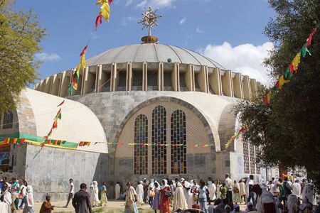 AXUM, ETHIOPIA - November 30, 2014: People visiting the cathedral of Axum During The Hidar Zion Ceremony on November 30, 2014 in Ethiopia, Africa