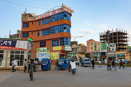 Addis Ababa, Ethiopia - January 18, 2010: View to the street in downtown Addis Ababa, Ethiopia.