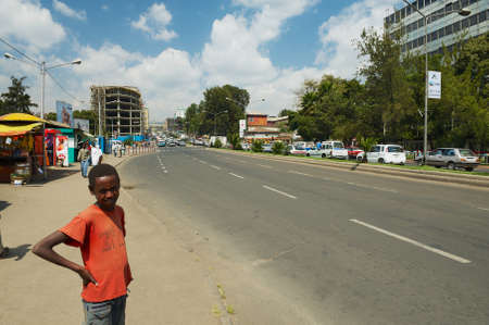 Addis Ababa, Ethiopia - January 18, 2010: Unidentified teenager stands at a sidewalk at the street in downtown Addis Ababa, Ethiopia.