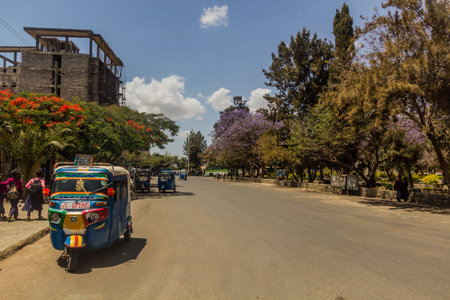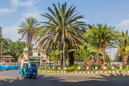 BAHIR DAR, ETHIOPIA - APRIL 1, 2019: Busy roundabout at Giorgis square in Bahir Dar, Ethiopia
