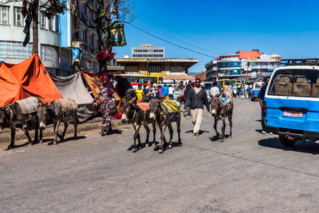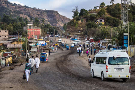 Gondar, Ethiopia - December 01, 2020: Daily Life of African town in the Northern part of Ethiopia