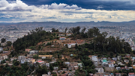 Antananarivo, french name Tananarive, short name Tana, Very poor capital and largest city in Madagascar, Madagasikara republic. View from top to Central Antananarivo cityscape.