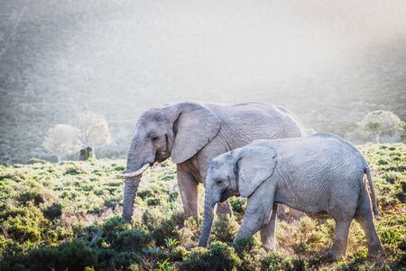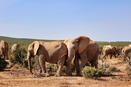 Elephant (Loxodonta Africana) in savannah safari at Addo National Park, South Africa