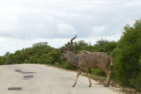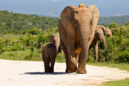 Elephant walking in the middle of the road in Addo National Elephants Park, South Africa.