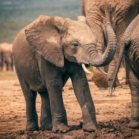 Baby african elephant playing with trunk in Addo National Park, South Africa