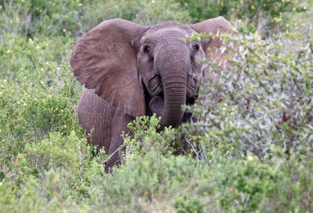 portrait of elephant hiding in bush in Addo Elephant National Park in Port Elizabeth - South Africa