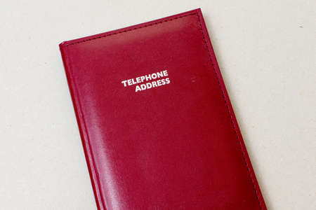 Red leather telephone/address book on beige background. Friendship, Business, office concepts.