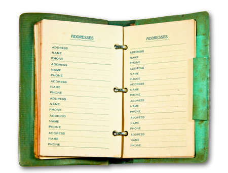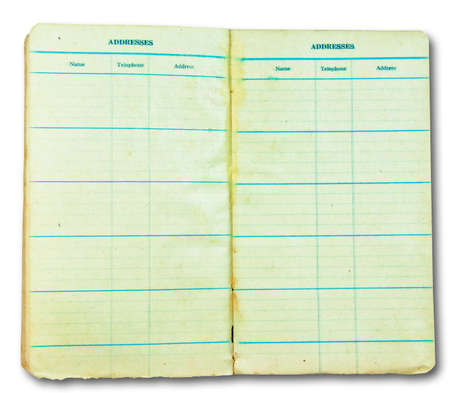 an open address book on white bckground