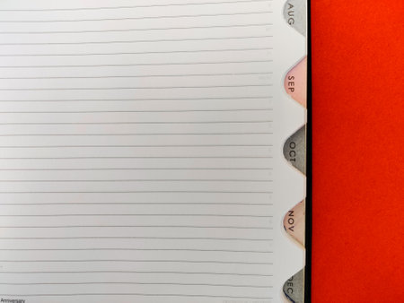 Copy space of diary with aug,sept,oct,nov,dec months.