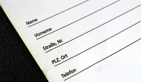 Detail of a form for personal data - in German