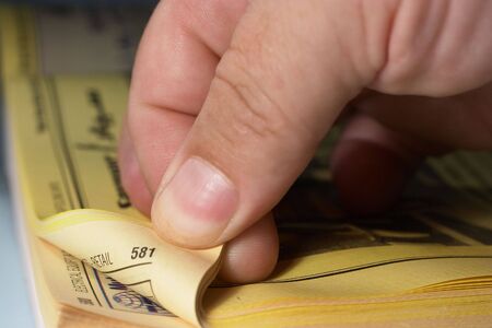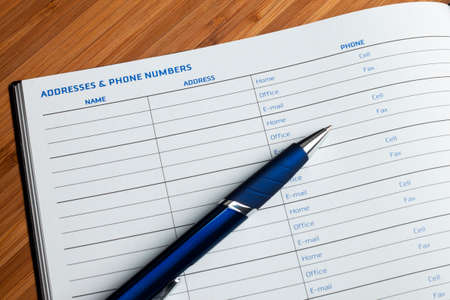 A image showing open telephone diary with ball pen