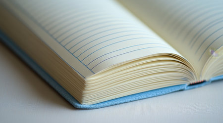 A clean and simple image of a blank. open notebook with a pen. perfect for showcasing your own text or design. Ideal for business. education. or personal use.