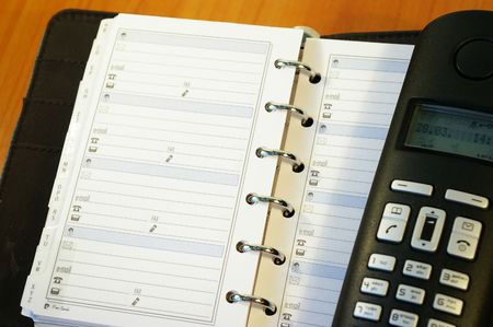 Close up of an organizer with contact page open.