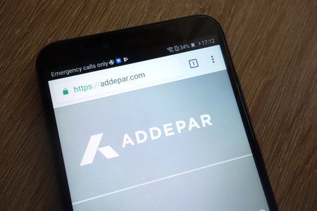 KONSKIE, POLAND - JULY 17, 2018: Addepar fintech company website displayed on a modern smartphone