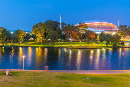 Sunset view of Adelaide oval viewed behind torrens river in Australia