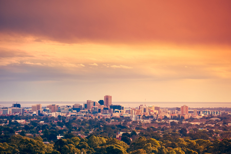 Adelaide, Australia - March 29 2019: Adelaide City downtown cityscape skyline. Adelaide is the capital city of South Australia