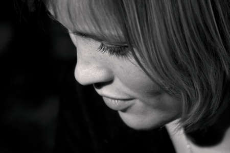 beautiful young woman portrait on black background, monochrome