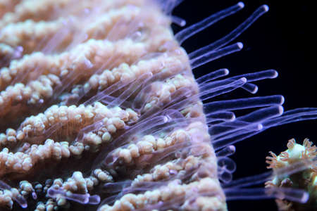 A close-up of a coral in an aquarium, saltwater aquarium.