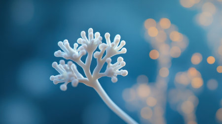 beautiful electronic microscopy of bacteria fungi fantasy microbiology in blue tones microscopic life generative ai
