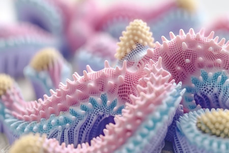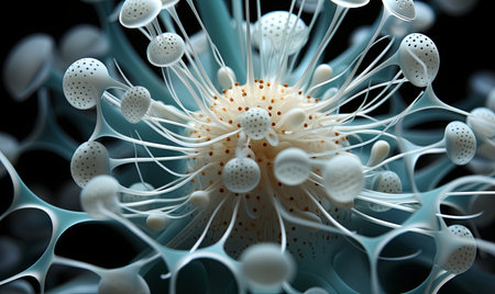 Macro shot of microbes cells and bacteria, 3d microscopic virus close up, abstract background or fantasy wallpaper, by ai generative