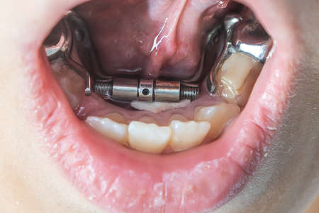 little girl with a plate on her teeth