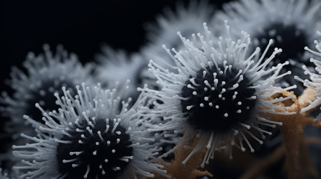 sporangia of a microscopic organism, microbiology concept