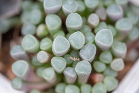 Close-up macro shot of Blue Spruce Stonecrop (Sedum rupestre 'Blue Spruce') leaves at the Singapore Flower Dome