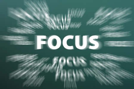 word focus with exclamation mark handwritten with white chalk on a blackboard