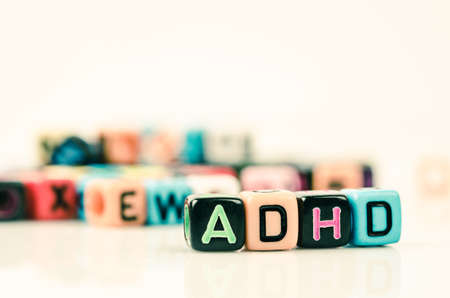 letters ADHD on wooden blocks, Attention Deficit Hyperactivity Disorder concept