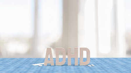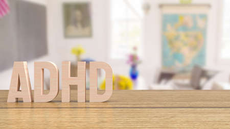 The adhd wood text on table in class room for medical or education concept 3d rendering