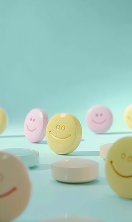 set of antidepressant pills with smiling faces, painkillers for pain and depression relief. High quality photo