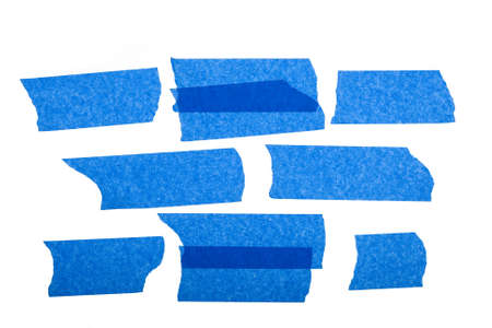 strips of blue masking tape isolated on white background